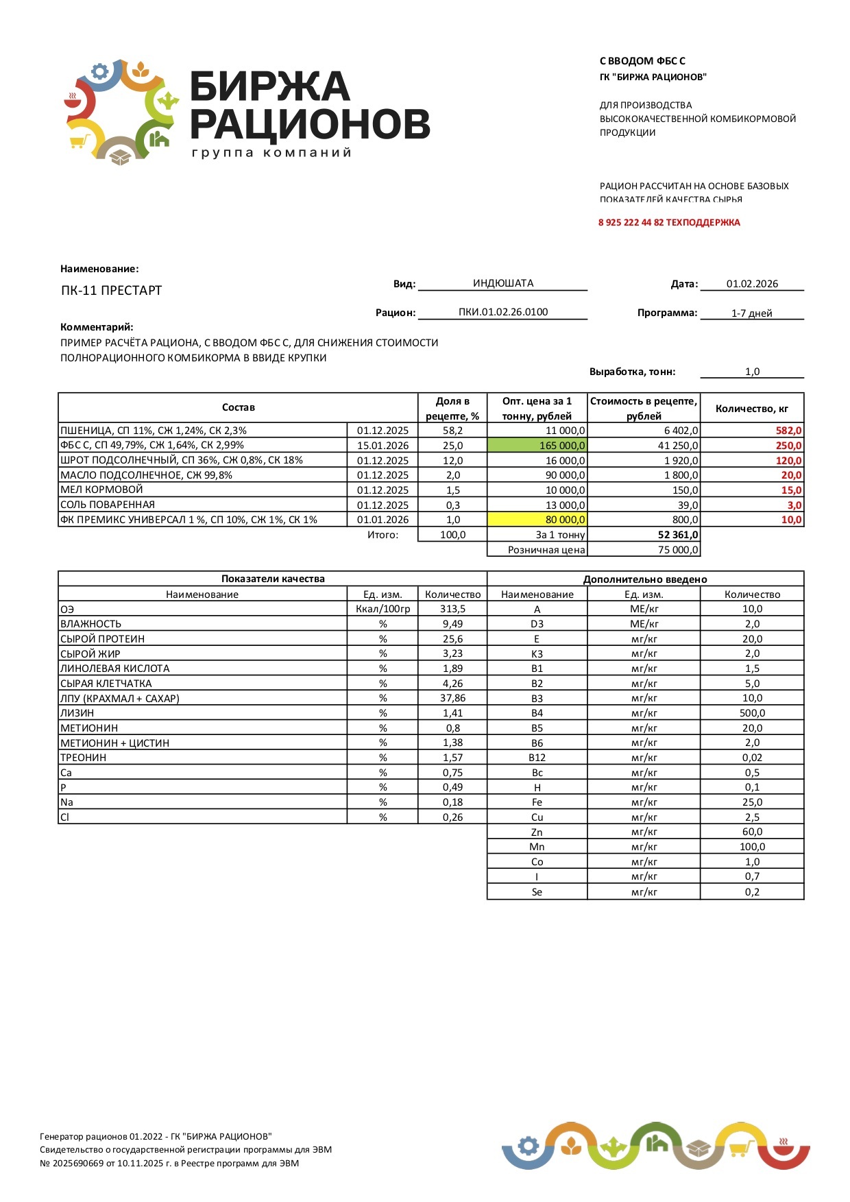 МЫ ПОДГОТОВИМ РАСЧЁТЫ РАЦИОНОВ ДЛЯ ДЕМОНСТРАЦИИ ИСПОЛЬЗОВАНИЯ ВЫСОКОКАЧЕСВТВЕННОГО СЫРЬЯ В СОСТАВЕ ПОЛНОРАЦИОННЫХ КОМБИКОРМОВ